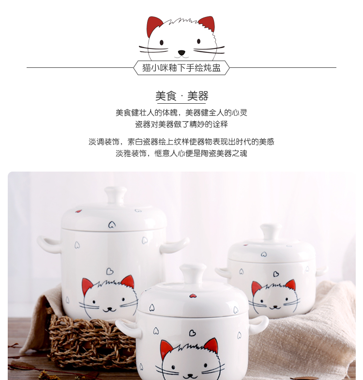 顺祥炖盅釉下纯手工手绘微波炉适用冠庭双耳陶瓷汤盅炖盅4.5英寸:600mL/5英寸:950ml 两种规格可供选择