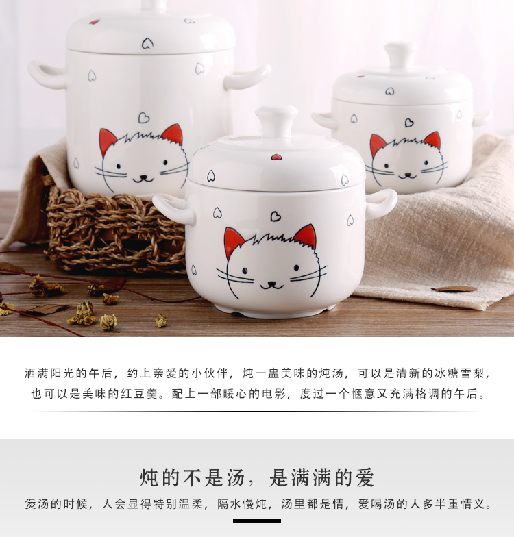 顺祥釉下纯手工手绘冠庭双耳陶瓷炖盅