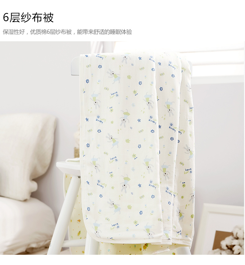 全棉时代春夏鲸鱼小孩蓝星星儿童纱布空调被/夏凉被,优质精梳棉纱布, 纱布缝制,透气不闷热