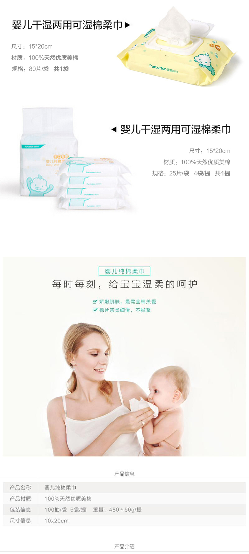 全棉时代纯棉婴儿护理湿巾/棉抽纸/全棉纸巾/棉柔巾/全棉手帕纸/婴儿湿巾组合套装系列 婴儿棉柔巾可湿纸巾1提 袋装婴儿湿巾1袋 婴儿手口专用纯棉湿巾1提